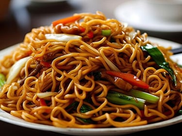 Chow mein is a popular dish of Chinese origin, featuring stir-fried noodles tossed with a colorful mix of vegetables, savory sauces like soy and sesame oil, and your choice of protein such as chicken, pork, shrimp, or tofu. Known for its versatile flavor profile, it can range from a mild and savory dish to an Indian street food-style version with a kick from chili and garlic